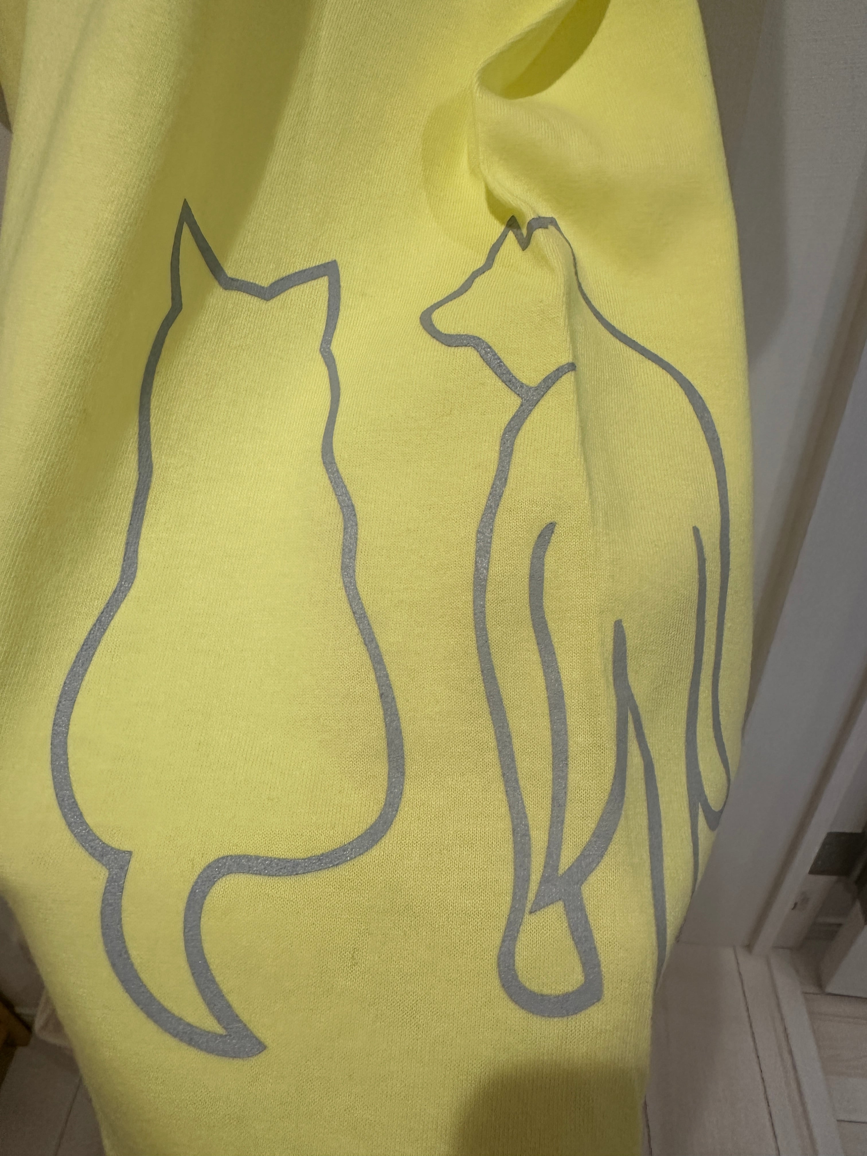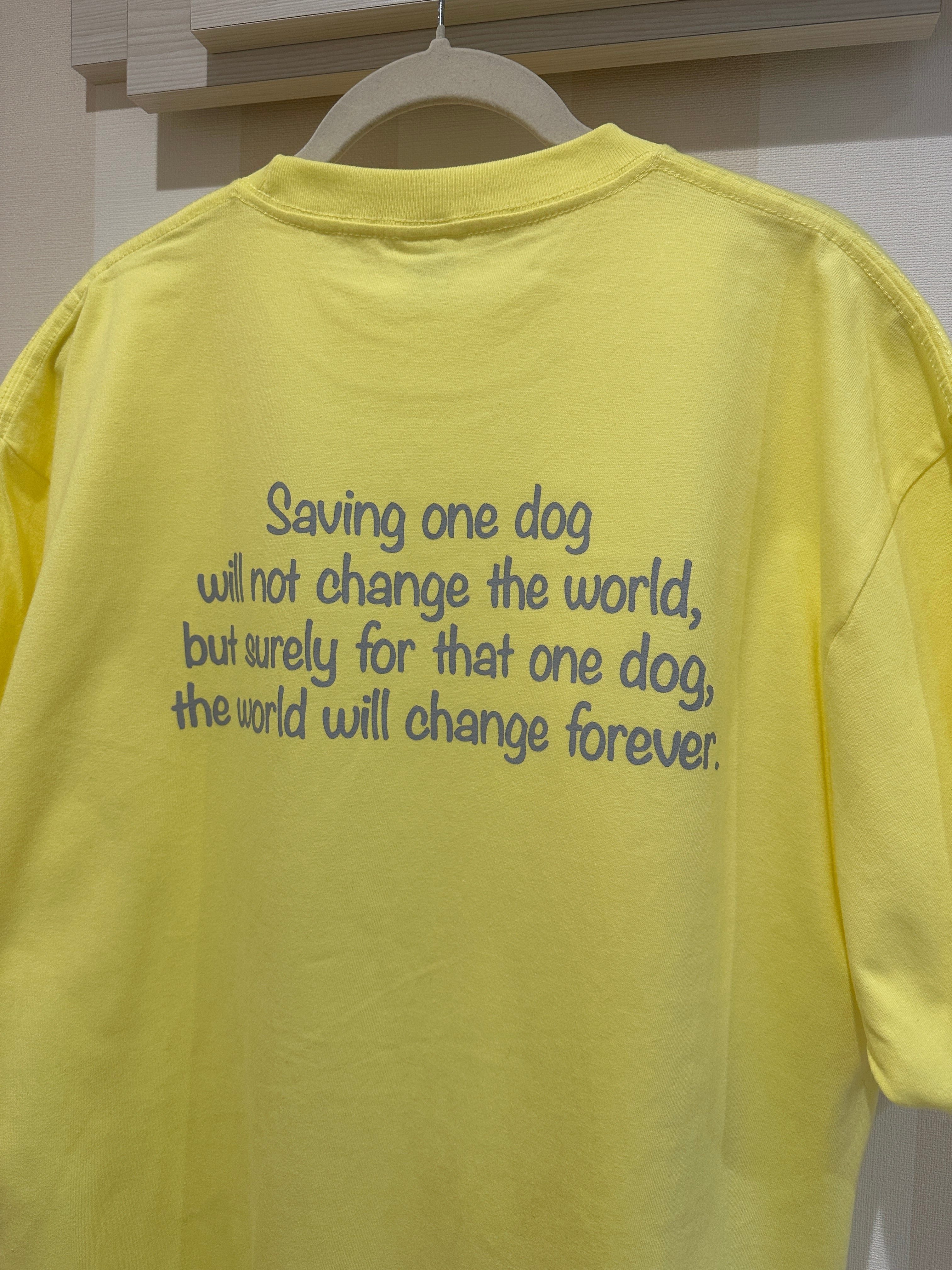 サイドには愛らしいワンコを、バックプリントには熱いメッセージを載せました。