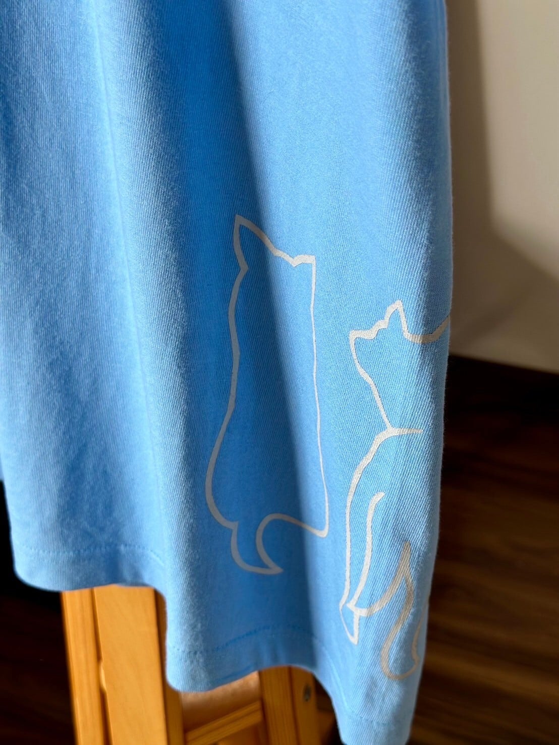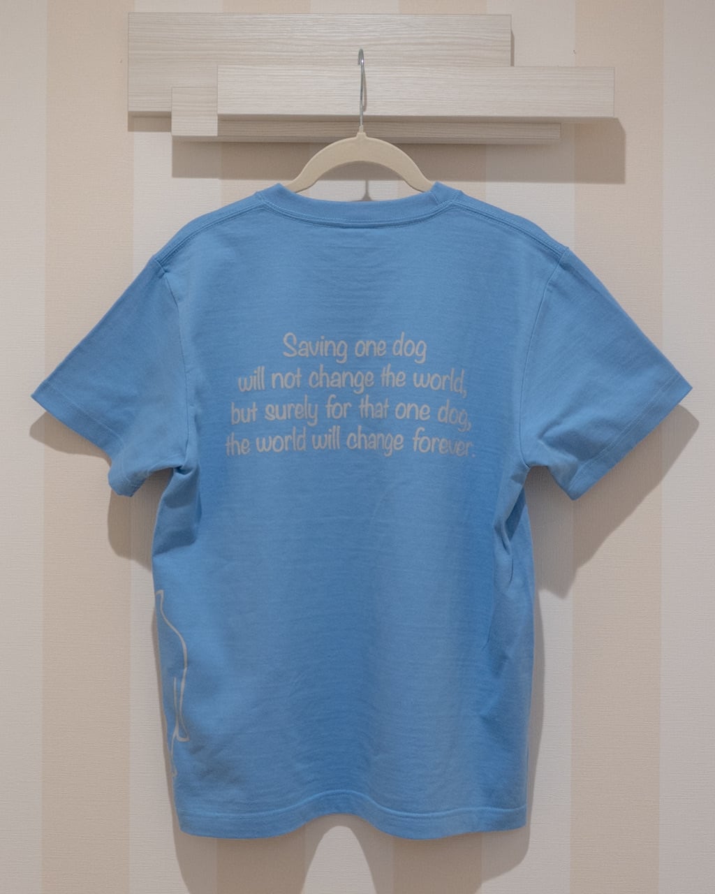 サイドには愛らしいワンコを、バックプリントには熱いメッセージを載せました。