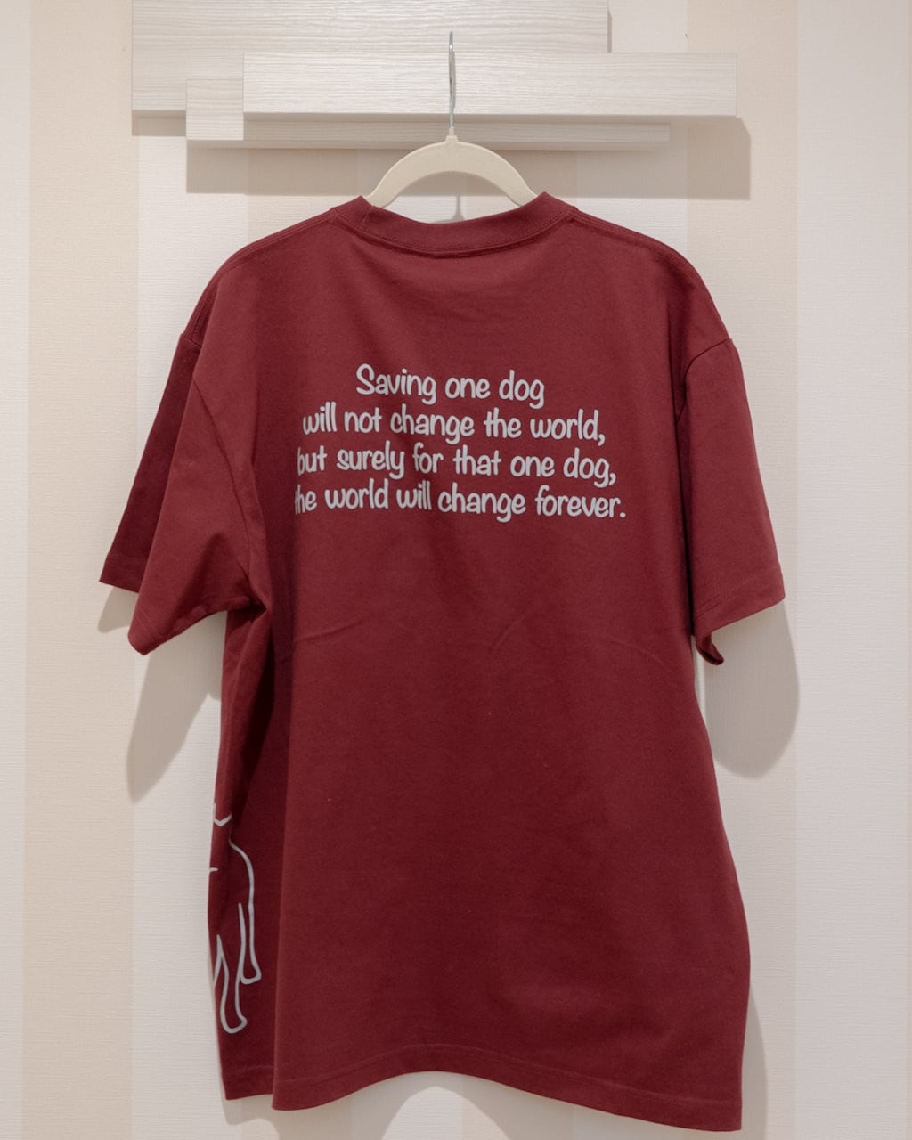 サイドには愛らしいワンコを、バックプリントには熱いメッセージを載せました。